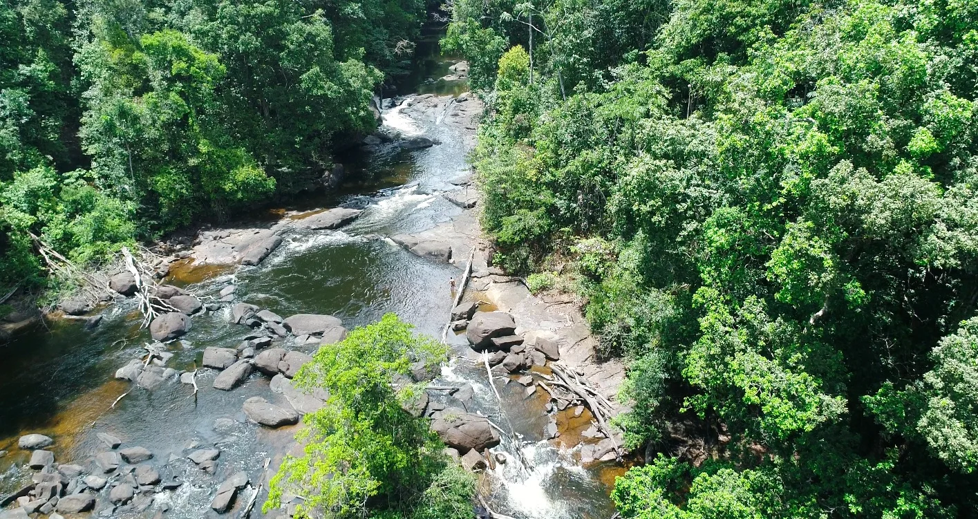 Tucked away in the Kanuku Mountains, next to a clear water creek, overlooking a waterfall.